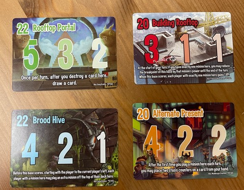 Watson, for example, lets you destroy one of your actions on a base (sadly, that means you can’t destroy anybody else’s actions). If it’s a wraith, then you will get that ability (so for Slimy, each of your minions at the base would get +2 power until the end of the turn).