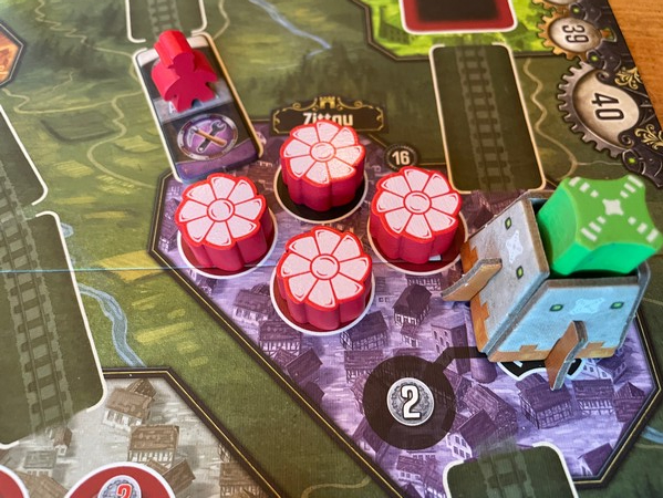 I like how the trains work, and how reaching certain spaces will get you stuff, but other spaces, you have to actually have enough engine power to power that space before it gets you anything.