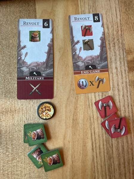 Those who don’t have the most swords/axes for victory will then have to do the “Upheaval” portion of the card, switching an Empire tile to the position mentioned (nothing happens if it’s already there).