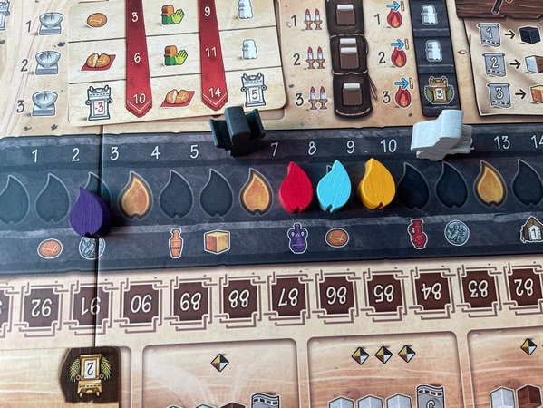 All of this is done in a neat variation of the Paladins of the West Kingdom banner mechanism when playing Paladins and taking action.