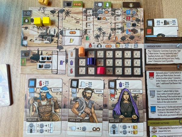 Ultimately, Ezra & Nehemiah has some really cool mechanisms, some that are adapted from previous games (like the banners, though spending them rather than just having them, or the connection bonuses when building next to a gate that are similar to the building bonuses in Viscounts of the West Kingdom).
