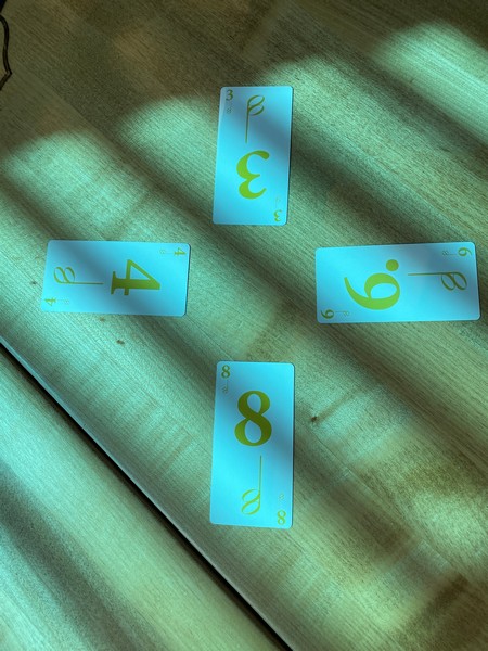 However, the cards you have were dealt to the person to your left, who then ordered them. If any cards were the same number, then they chose which card was “higher”, and then gave them to you to spread out.