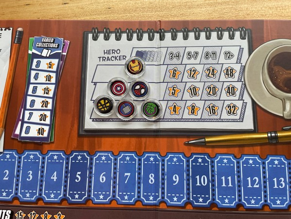 After three rounds of all that, you total up the points for your collection, which would include the Highlights, hero tracker, and your collection, and see who wins!