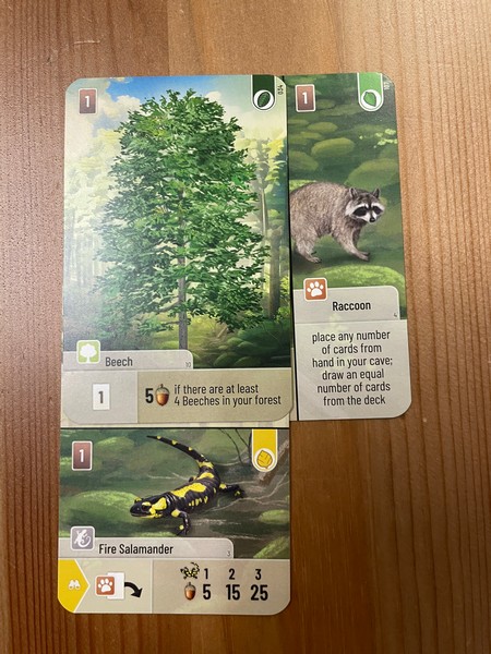 For example, the salamander, if you discard a yellow card to play it, will allow you to play another animal with a paw symbol for free, though you won’t get any immediate bonuses or anything.