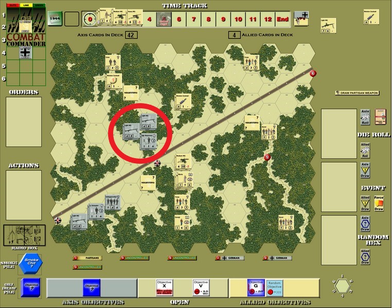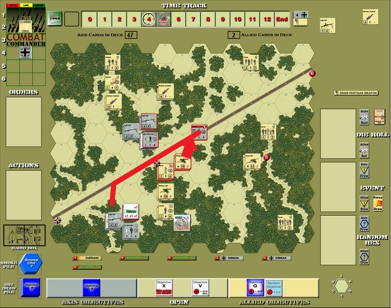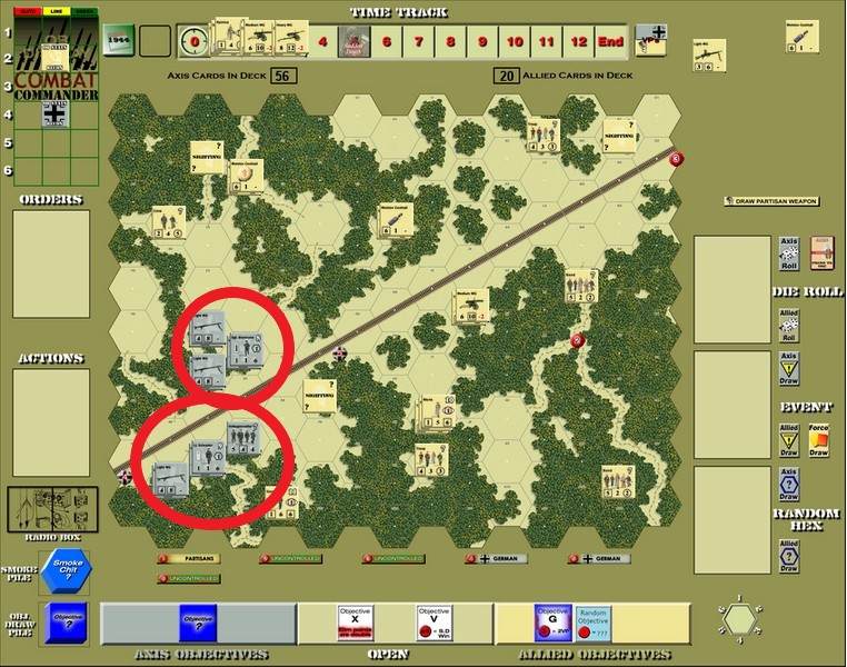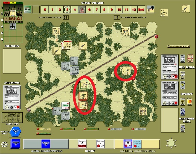 And then more Partisan Fire, trying to do something, caused a German morale check Time trigger.