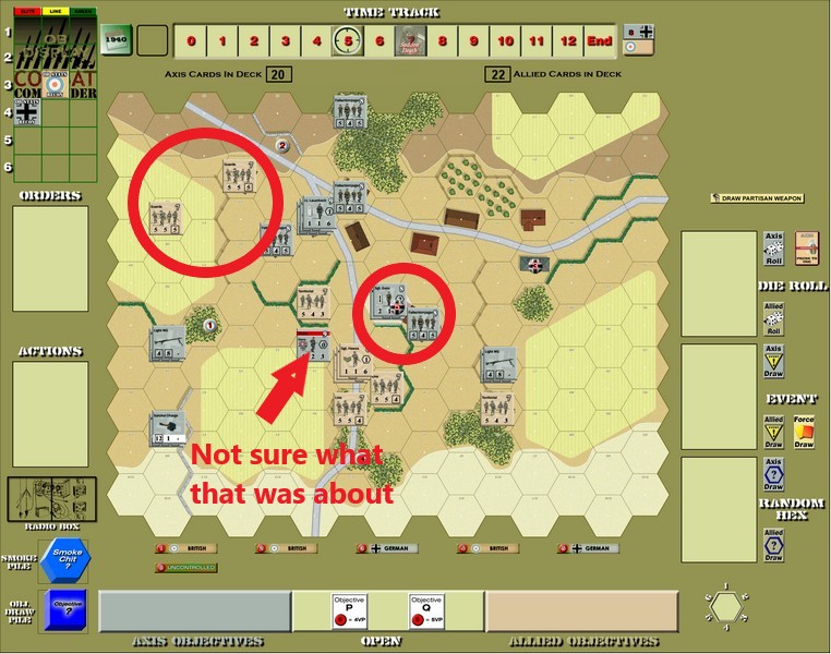 That brought the first Time event (the German deck ran out) and the first of the German reinforcements landed.