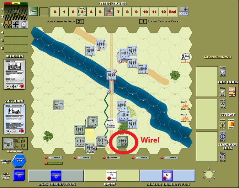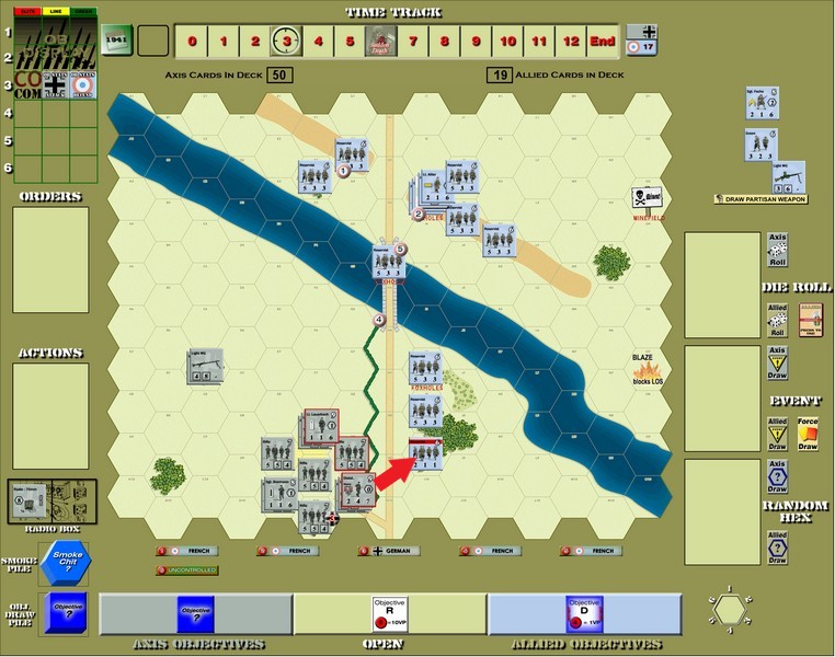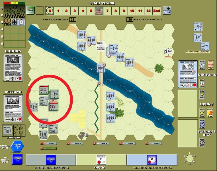 Just as an aside, that bridge hex where my squad is, Objective 5, would worth a 20 point swing if Roger could take it.
