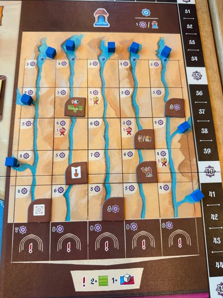 After the 2nd, 4th and 6th rounds, there will be a Rain Scoring phase which will give players points for each of their canals on the board.