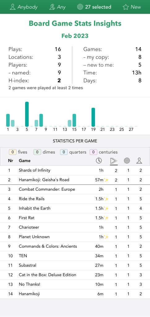 Even so, I managed to play 16 games in February, which isn’t too bad!